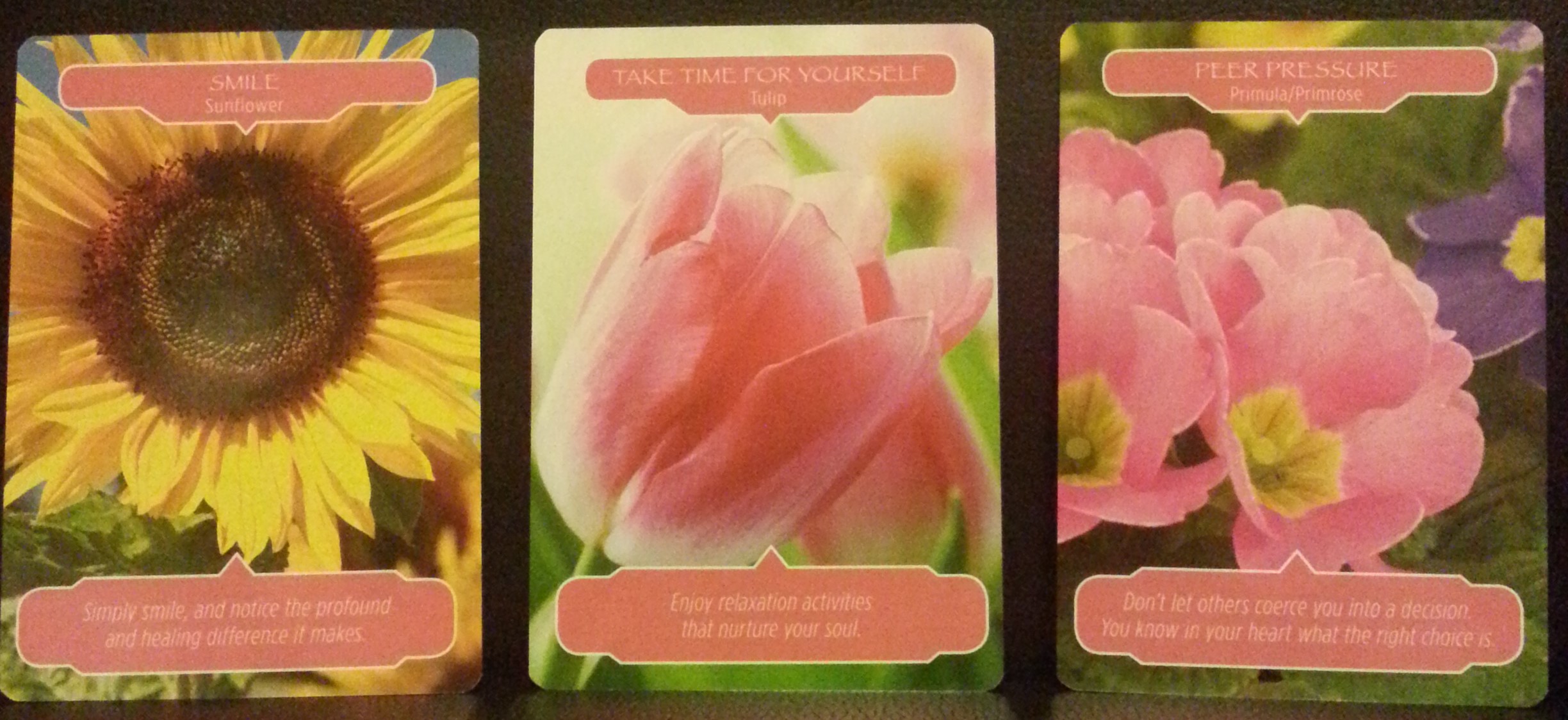 Cards Pulled from Doreen Virtues Flower Therapy Deck are: Sunflower- Tulip- Primrose and The card pulled from Steven D. Farmers Earth Magic Deck was : River Movement